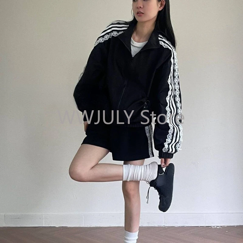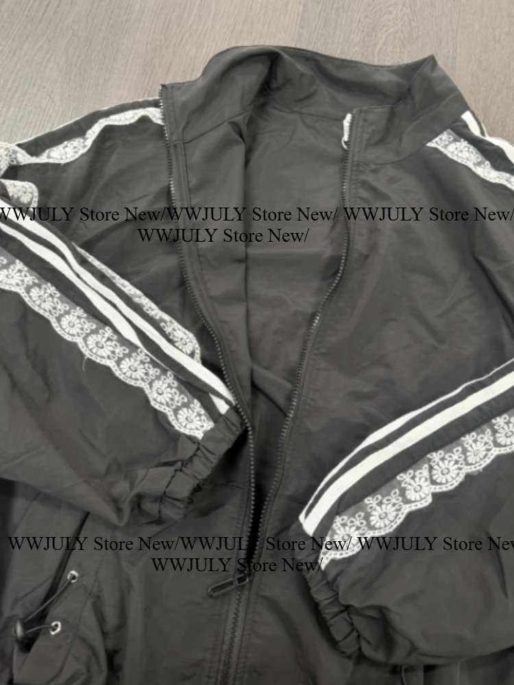 Lace Patchwork Striped Sun Protection Ja...