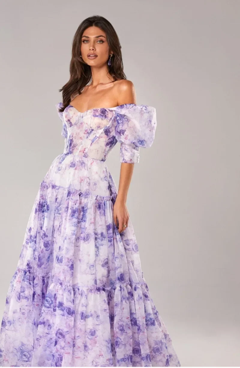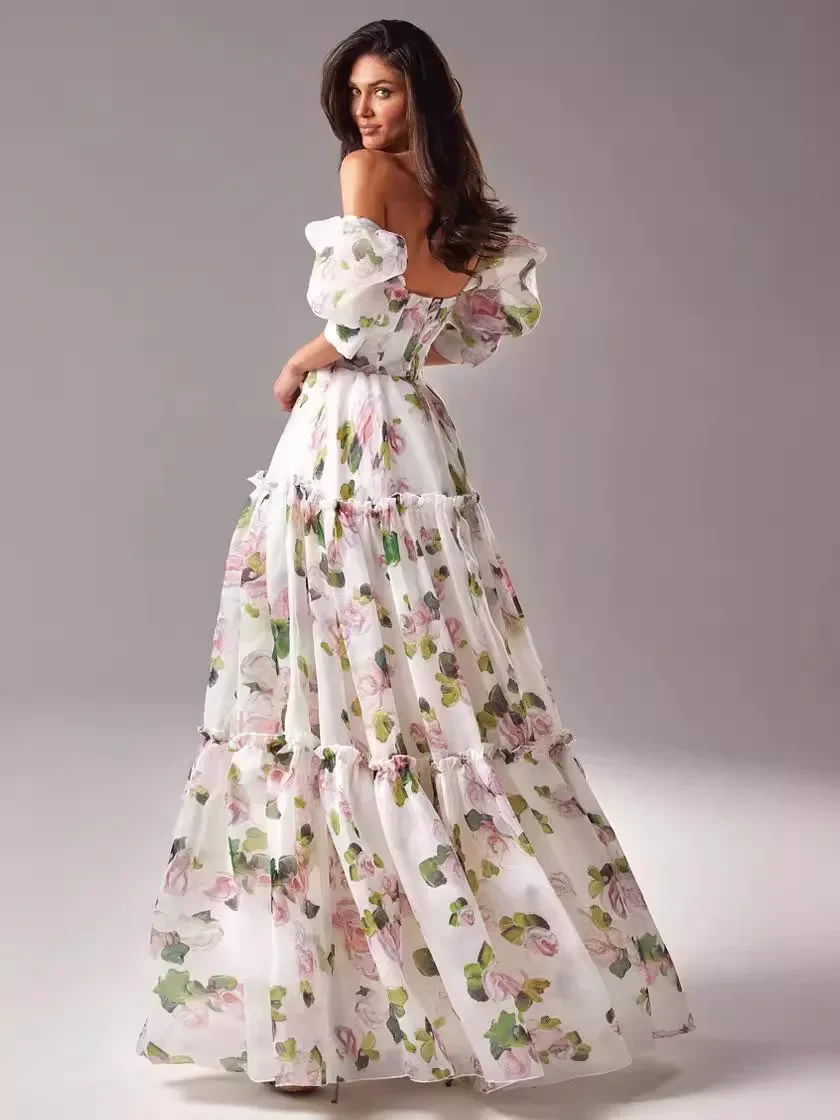 Party Dress Print Women Dresses Short Sleeve Floor Length Maxi Loose Vestidos Summer 2025 Slight Strech Night Beach Party